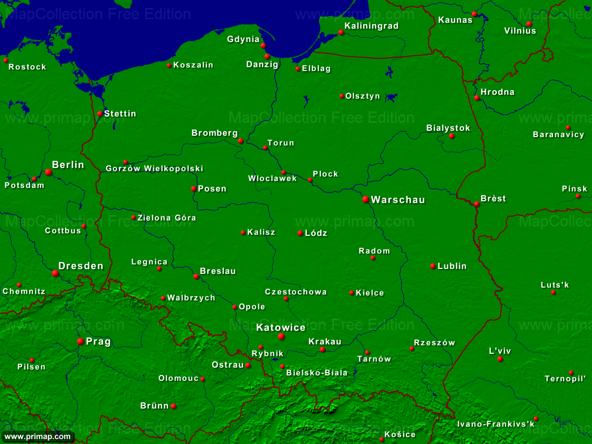 Länderkarten - Polen - Städte + Grenzen - 1200x900 (4:3) große Schrift