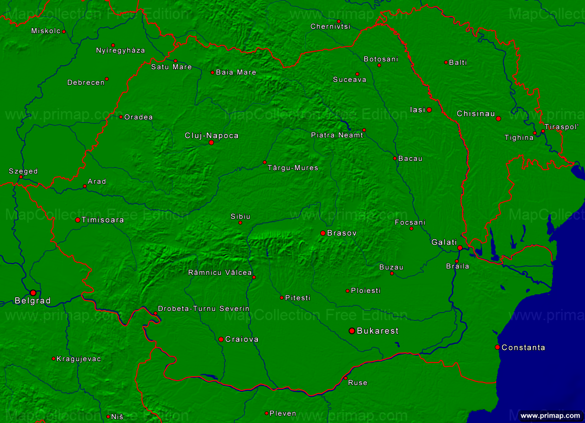 Länderkarten - Rumänien - Städte + Grenzen - 1200x868 kleine Schrift
