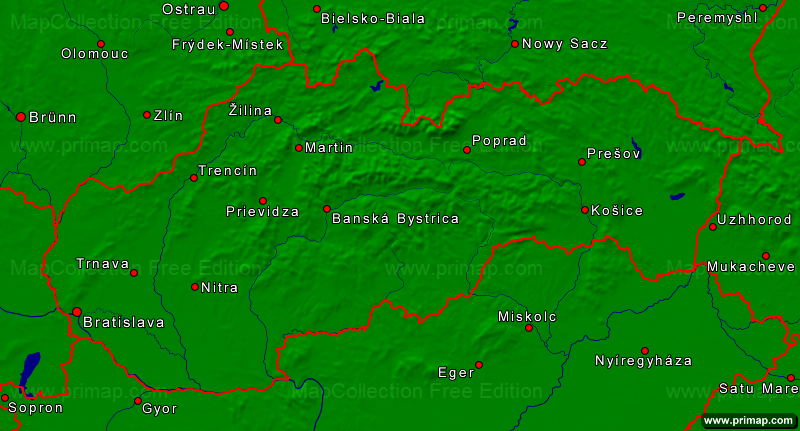 Länderkarten - Slowakei - Städte + Grenzen - 800x431 kleine Schrift