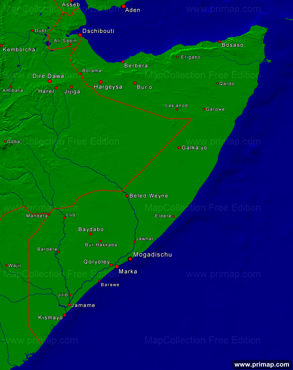 Länderkarten - Somalia - Städte + Grenzen - 950x1200 kleine Schrift