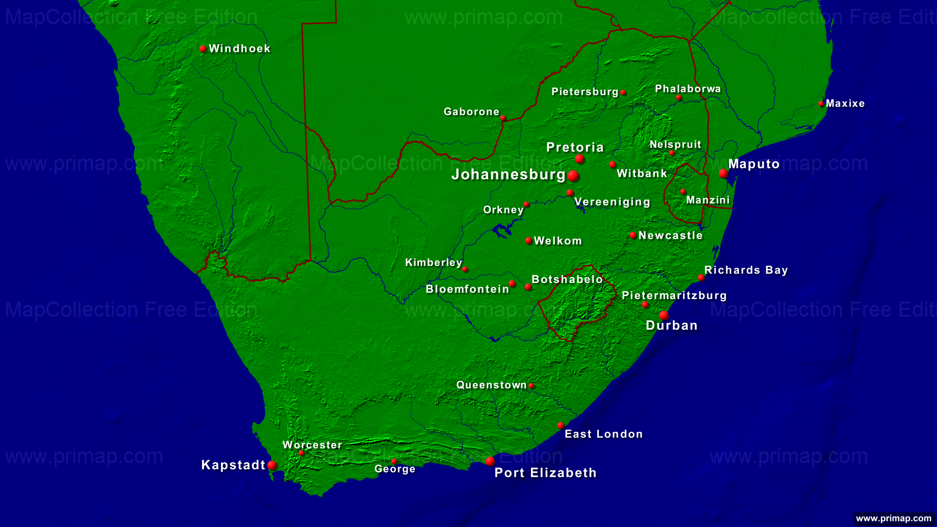 Länderkarten - Südafrika - Städte + Grenzen - 1920x1080 (16:9) große Schrift