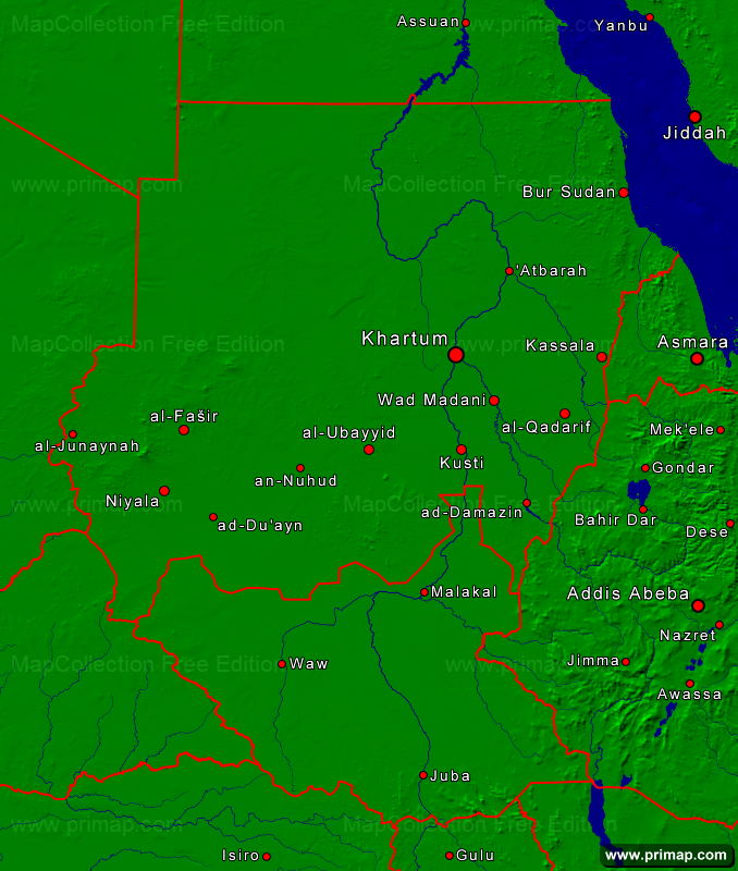 Länderkarten - Sudan - Städte + Grenzen - 678x800 kleine Schrift