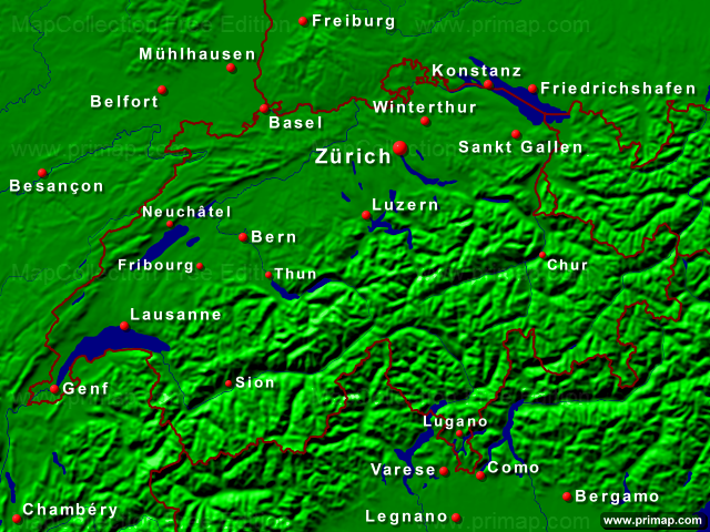 Länderkarten - Schweiz - Städte + Grenzen - 640x480 (4:3) große Schrift