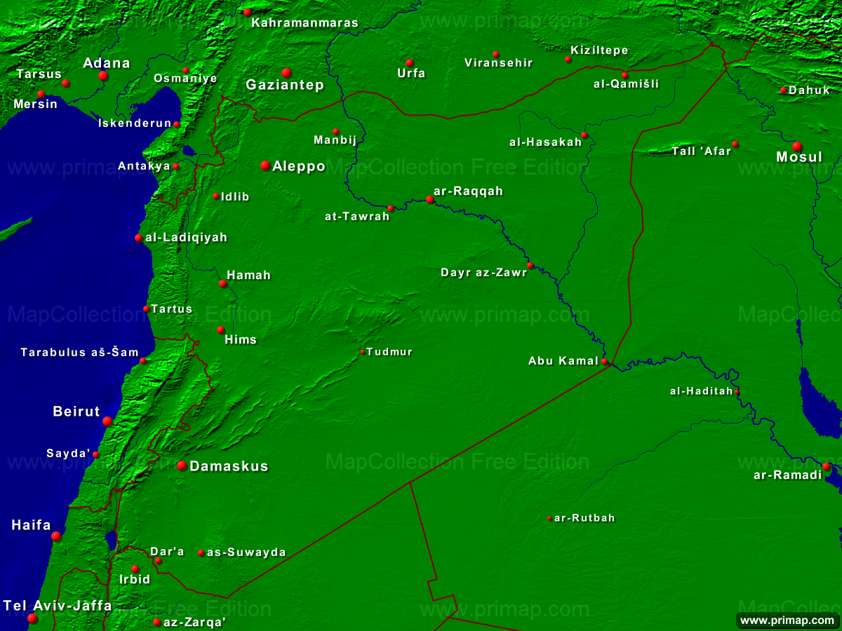 Länderkarten - Syrien - Städte + Grenzen - 1200x900 (4:3) große Schrift