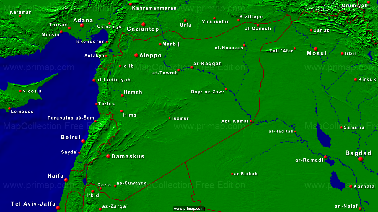 Länderkarten - Syrien - Städte + Grenzen - 1280x720 (16:9) große Schrift
