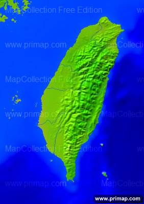 Länderkarten - Taiwan - Vegetation - 282x400