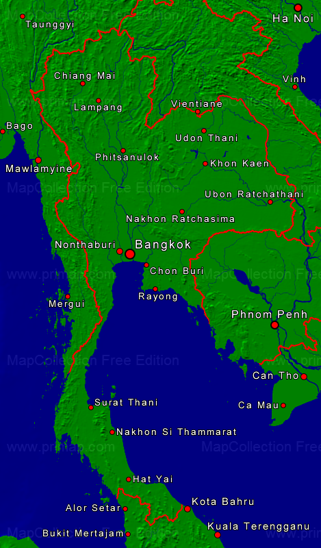 Länderkarten - Thailand - Städte + Grenzen - 469x800 kleine Schrift