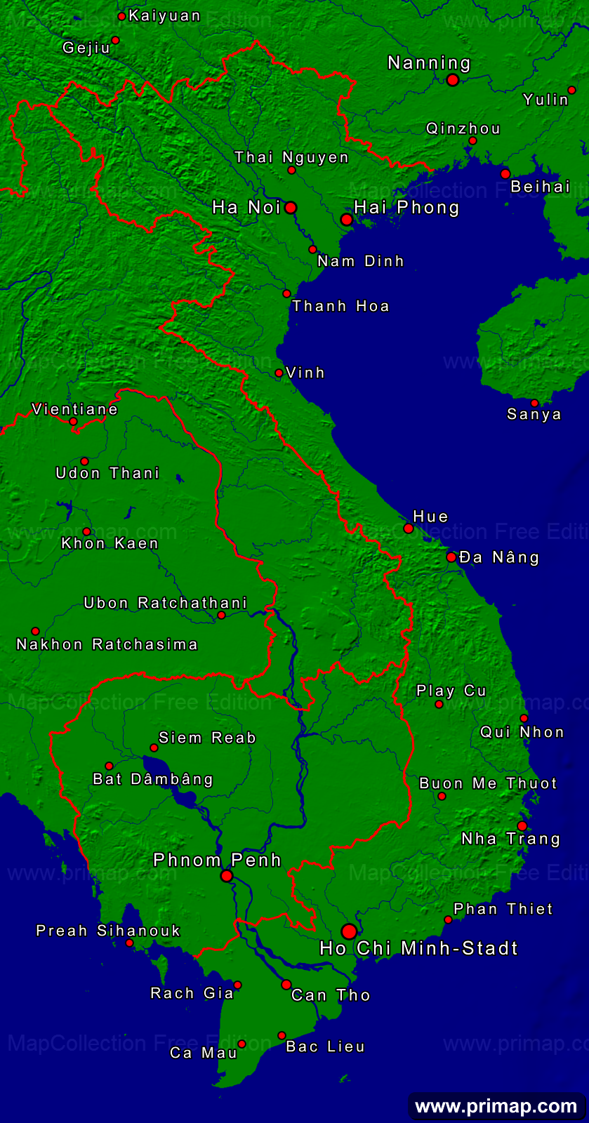 Länderkarten - Vietnam - Städte + Grenzen - 839x1600 kleine Schrift