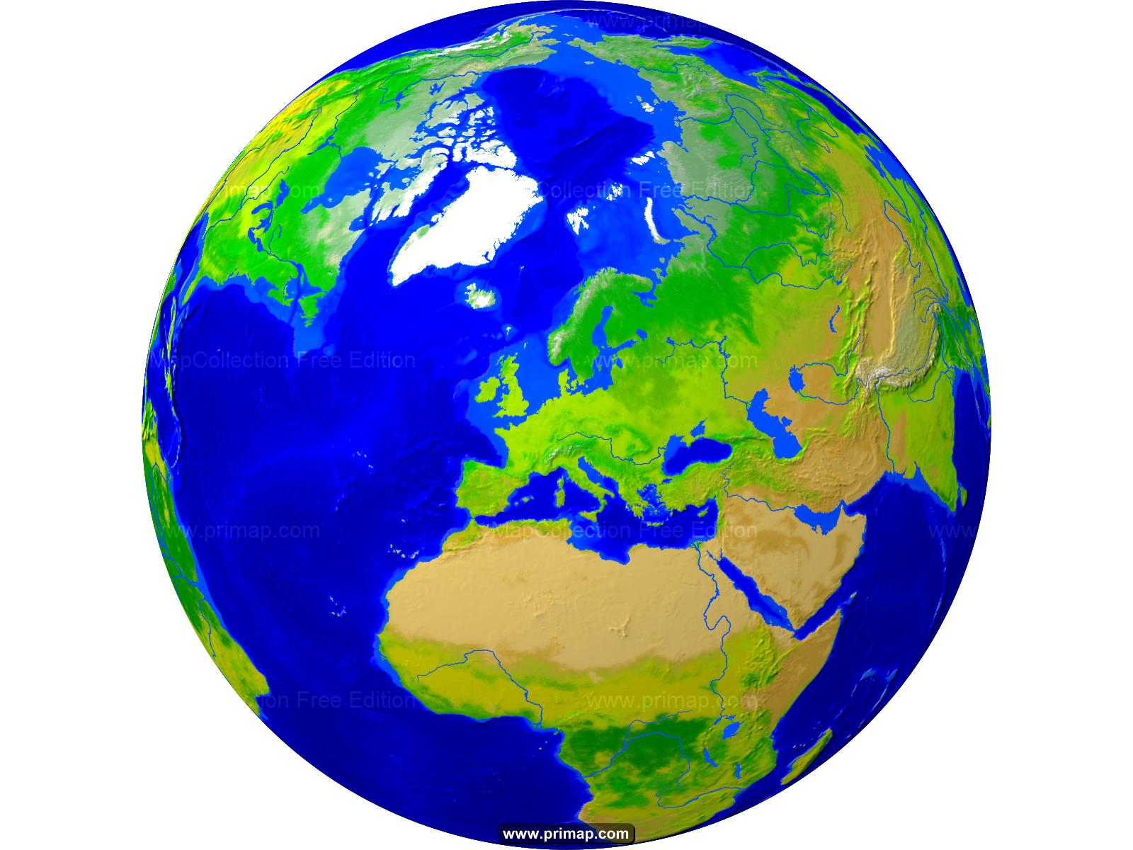 Weltkarten - Globus (Europa-zentriert) - Vegetation - 1600x1200 (4:3)