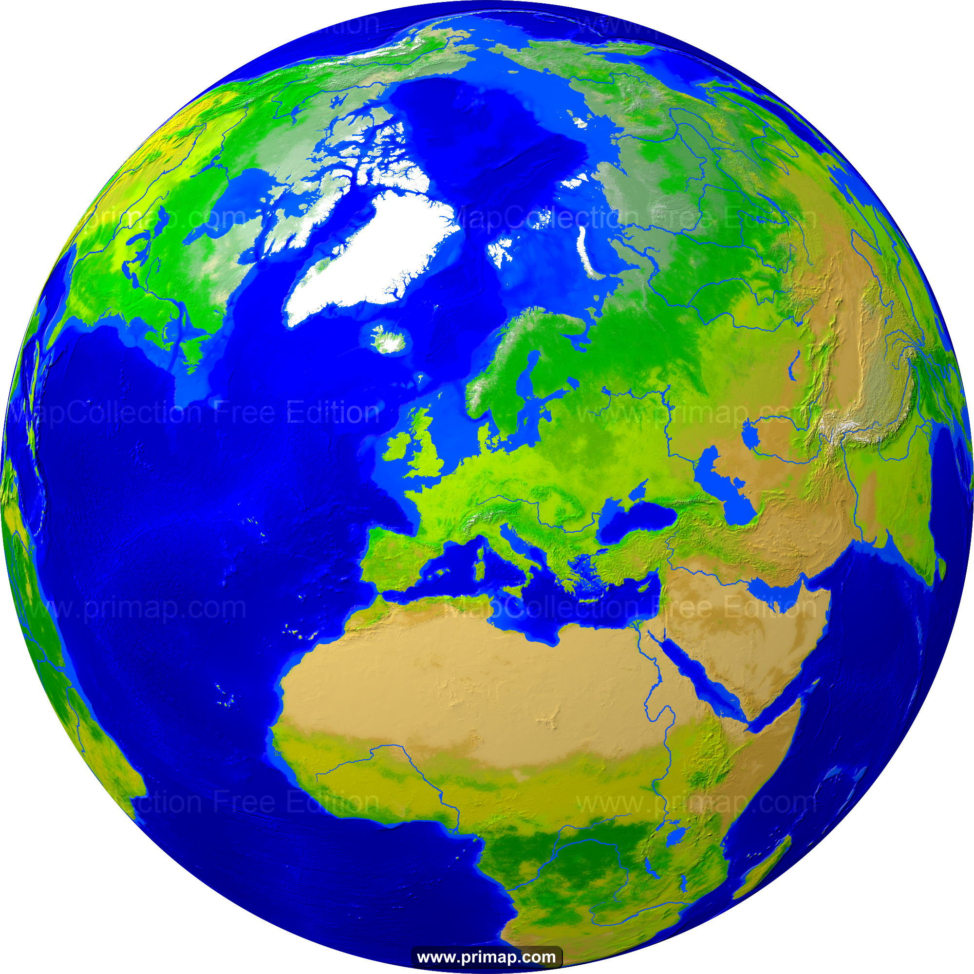 Weltkarten - Globus (Europa-zentriert) - Vegetation - 2000x2000