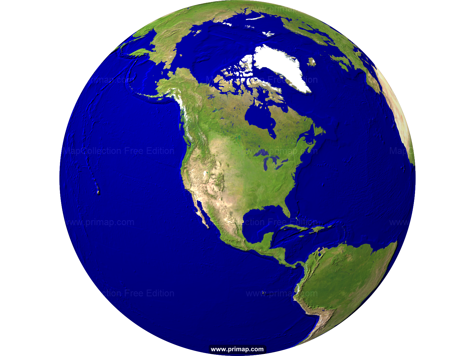 Weltkarten - Globus (USA-zentriert) - Satellit - 1600x1200 (4:3)