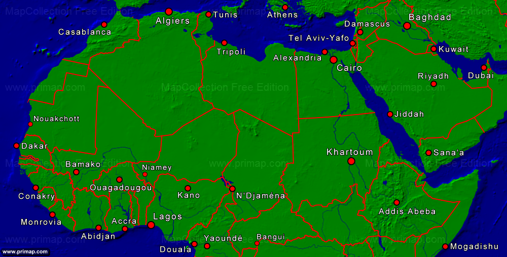 Continental maps - Africa-North - Towns + Borders - 1000x507 small Font