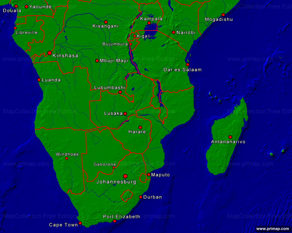 Continental maps - Africa-South - Towns + Borders - 1000x796 small Font