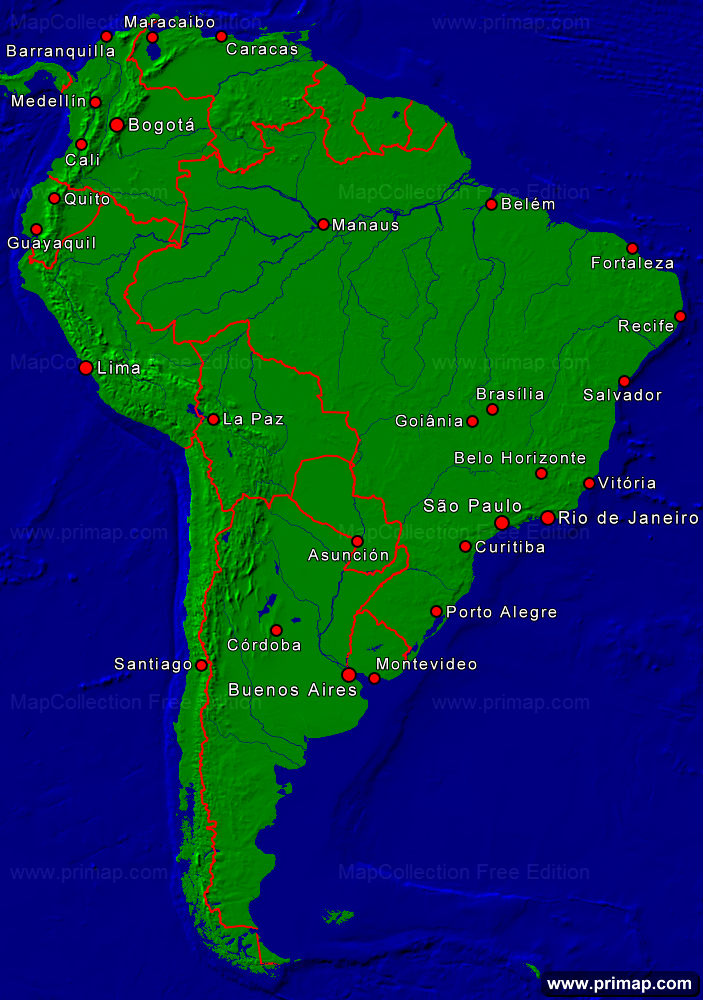 Continental maps - America-South - Towns + Borders - 703x1000 small Font