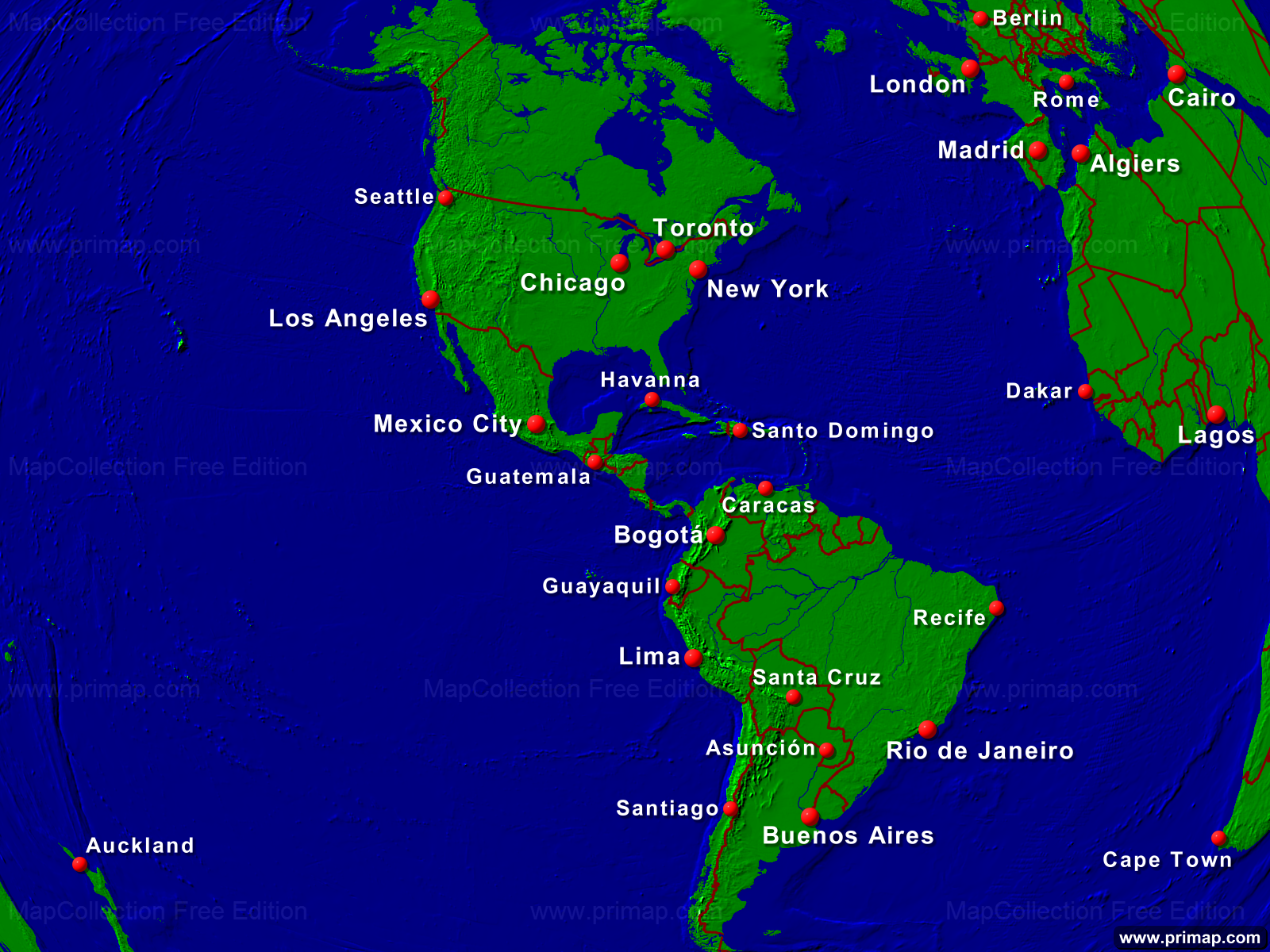 Continental maps - America - Towns + Borders - 1600x1200 (4:3) large Font