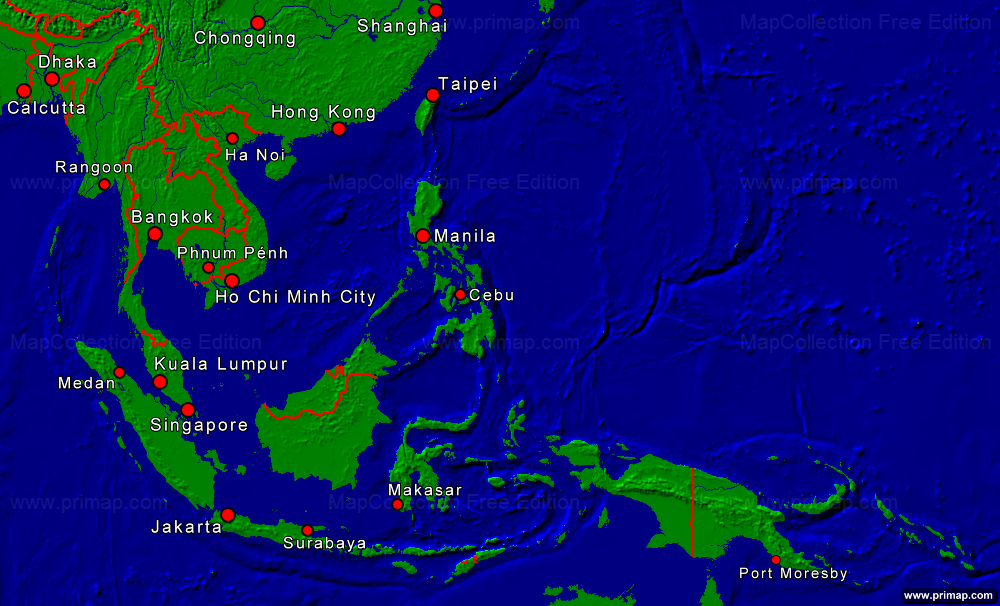 Continental maps - Asia-Southeast - Towns + Borders - 1000x606 small Font