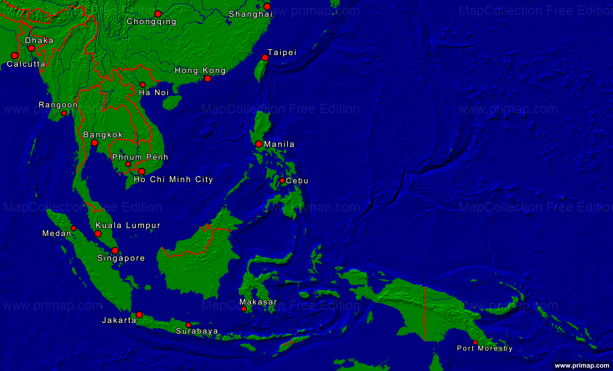Continental maps - Asia-Southeast - Towns + Borders - 2000x1212 small Font