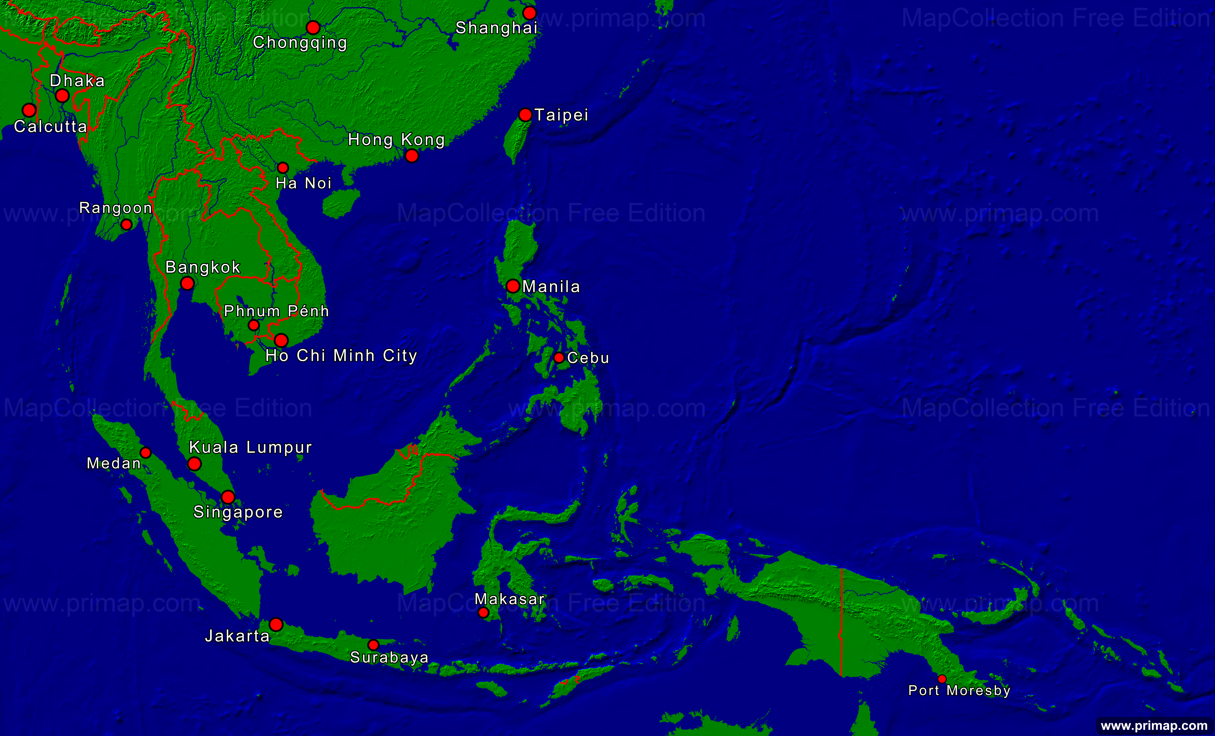 Continental maps - Asia-Southeast - Towns + Borders - 4000x2423 small Font