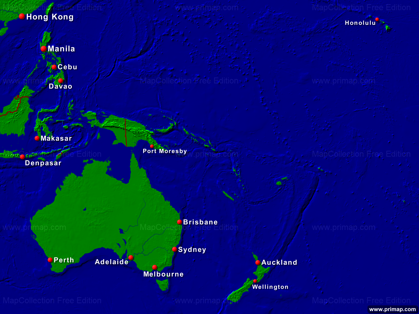 Continental maps - Australia-Oceania - Towns + Borders - 1600x1200 (4:3) large Font