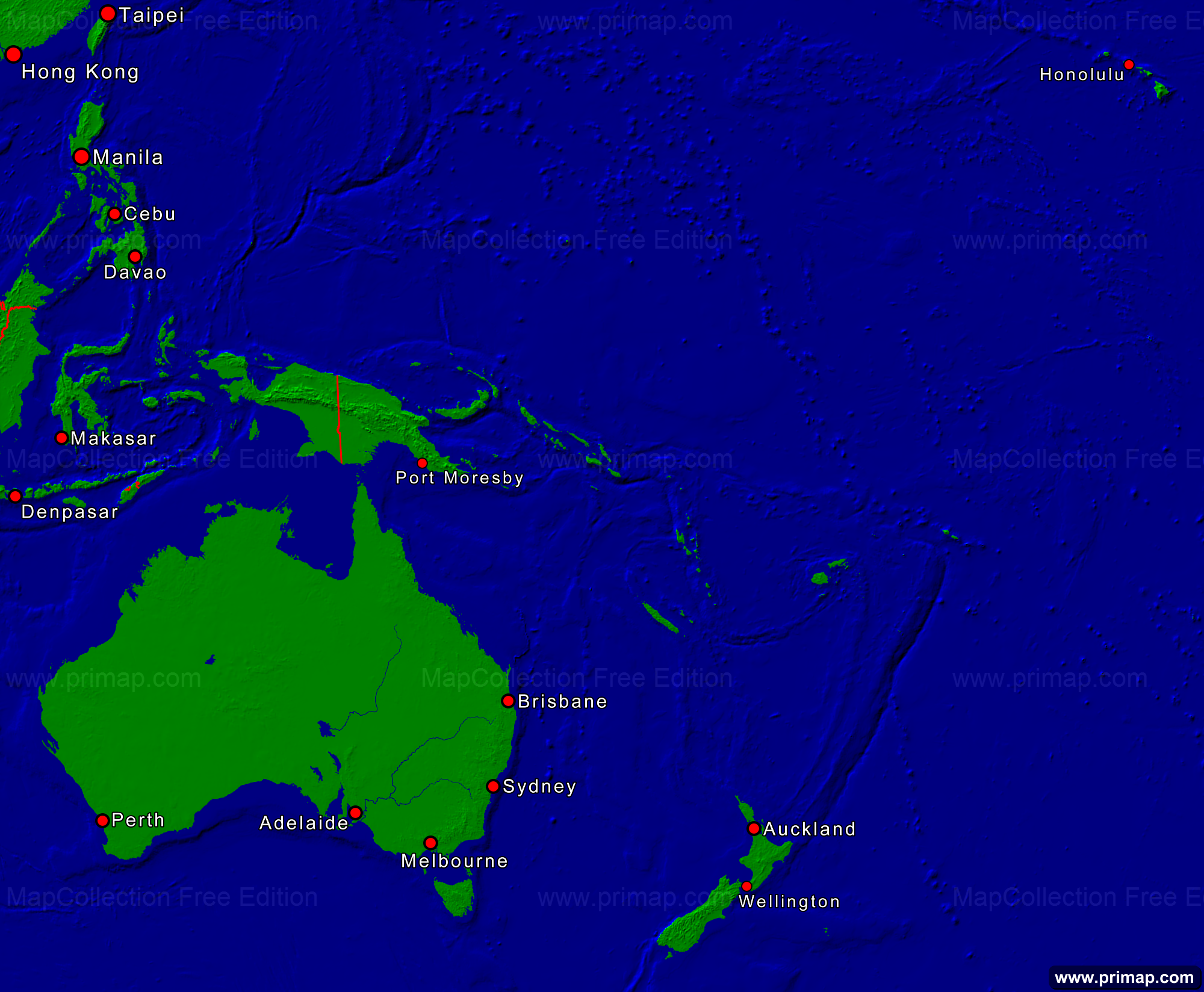Continental maps - Australia-Oceania - Towns + Borders - 2000x1648 small Font