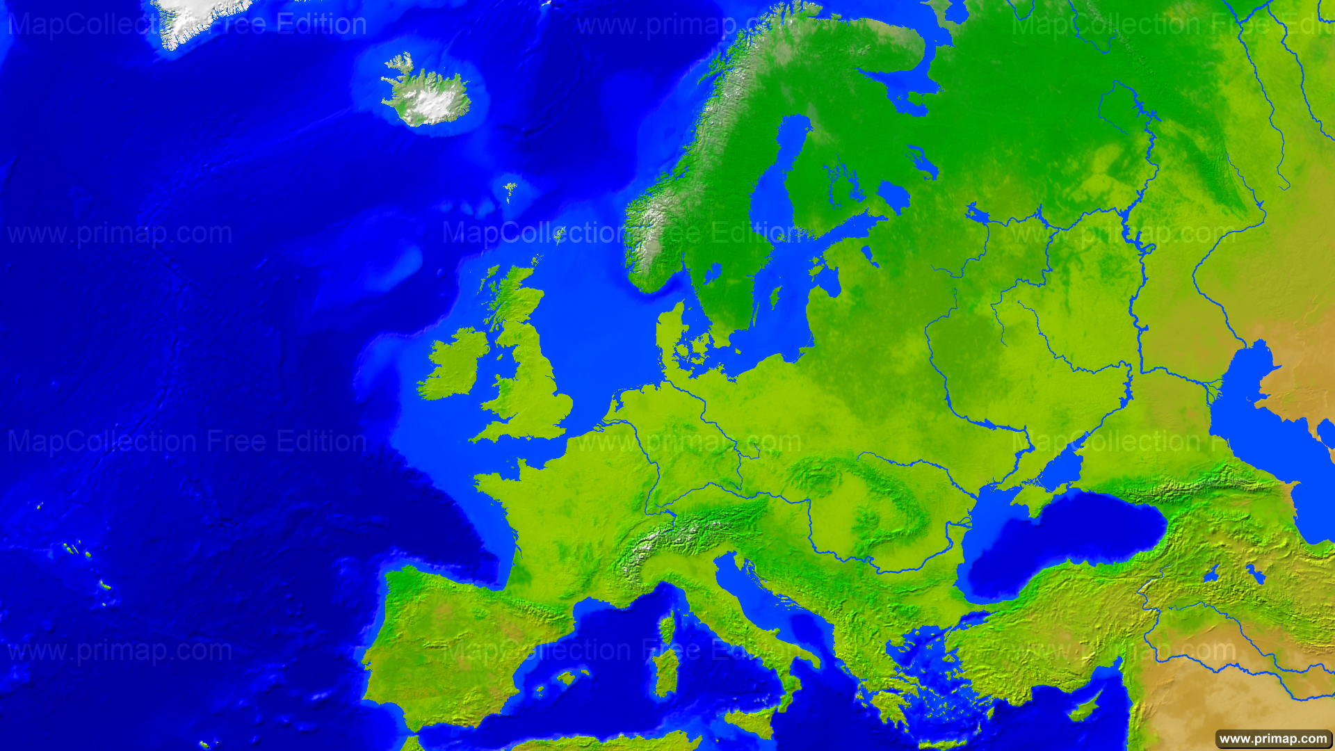 Continental maps - Europe (Type 2) - Vegetation - 1920x1080 (16:9)