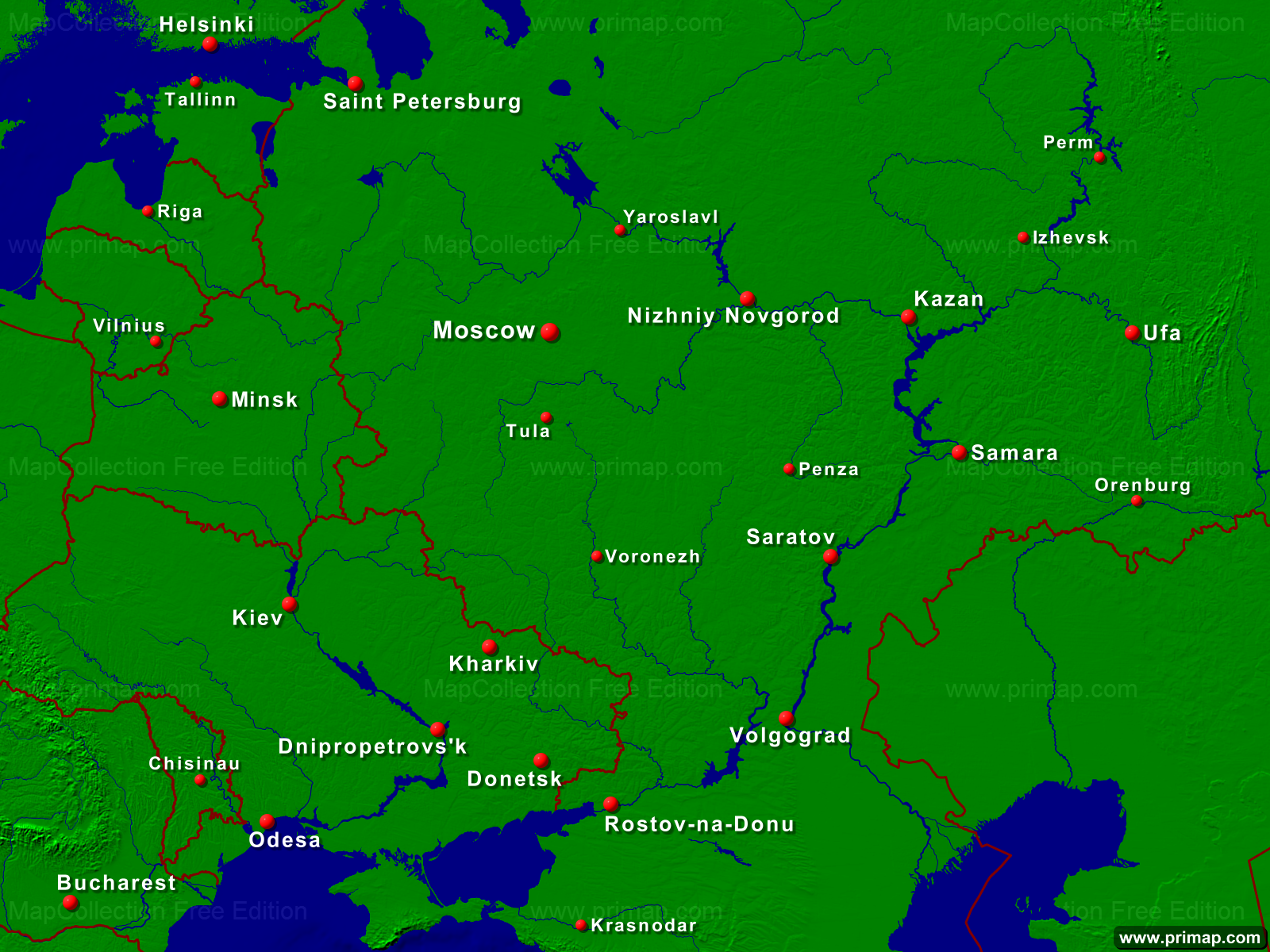 Continental maps - Europe-East - Towns + Borders - 1600x1200 (4:3) large Font