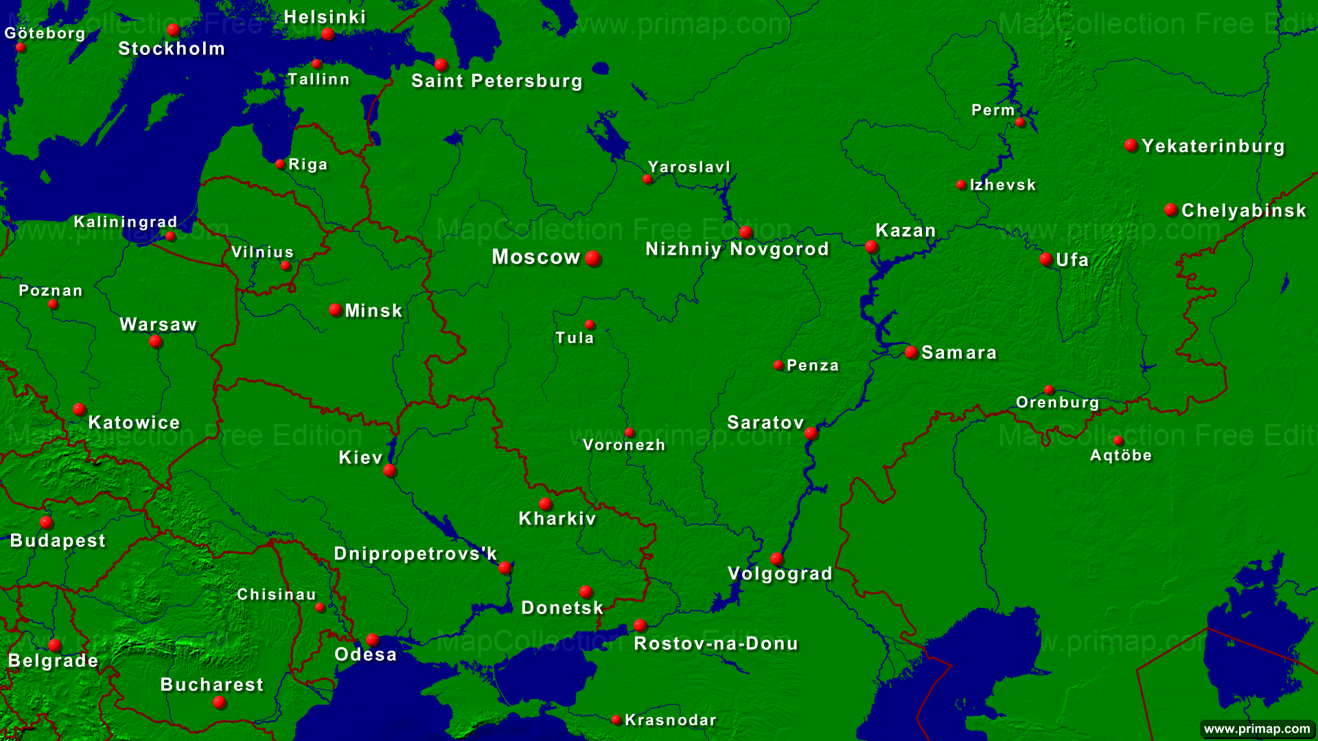 Continental maps - Europe-East - Towns + Borders - 1920x1080 (16:9) large Font