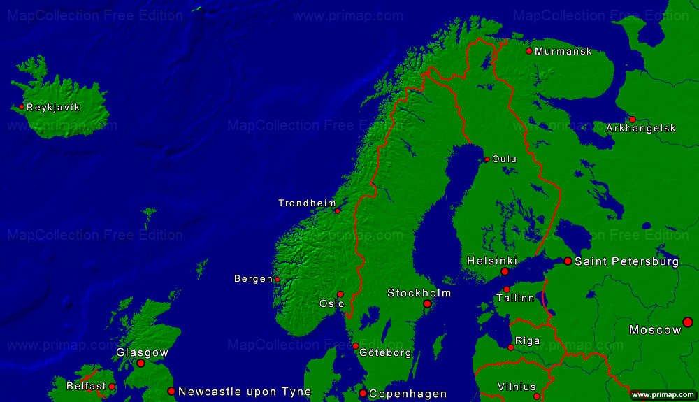 Continental maps - Europe-North - Towns + Borders - 1000x575 small Font