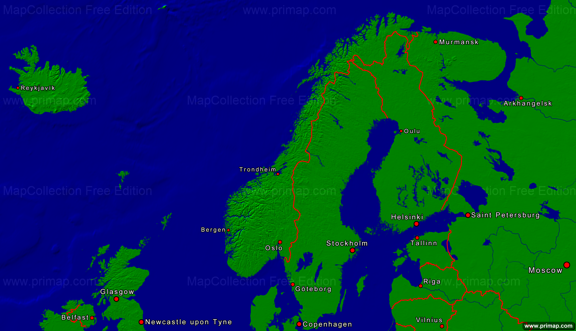 Continental maps - Europe-North - Towns + Borders - 2000x1149 small Font
