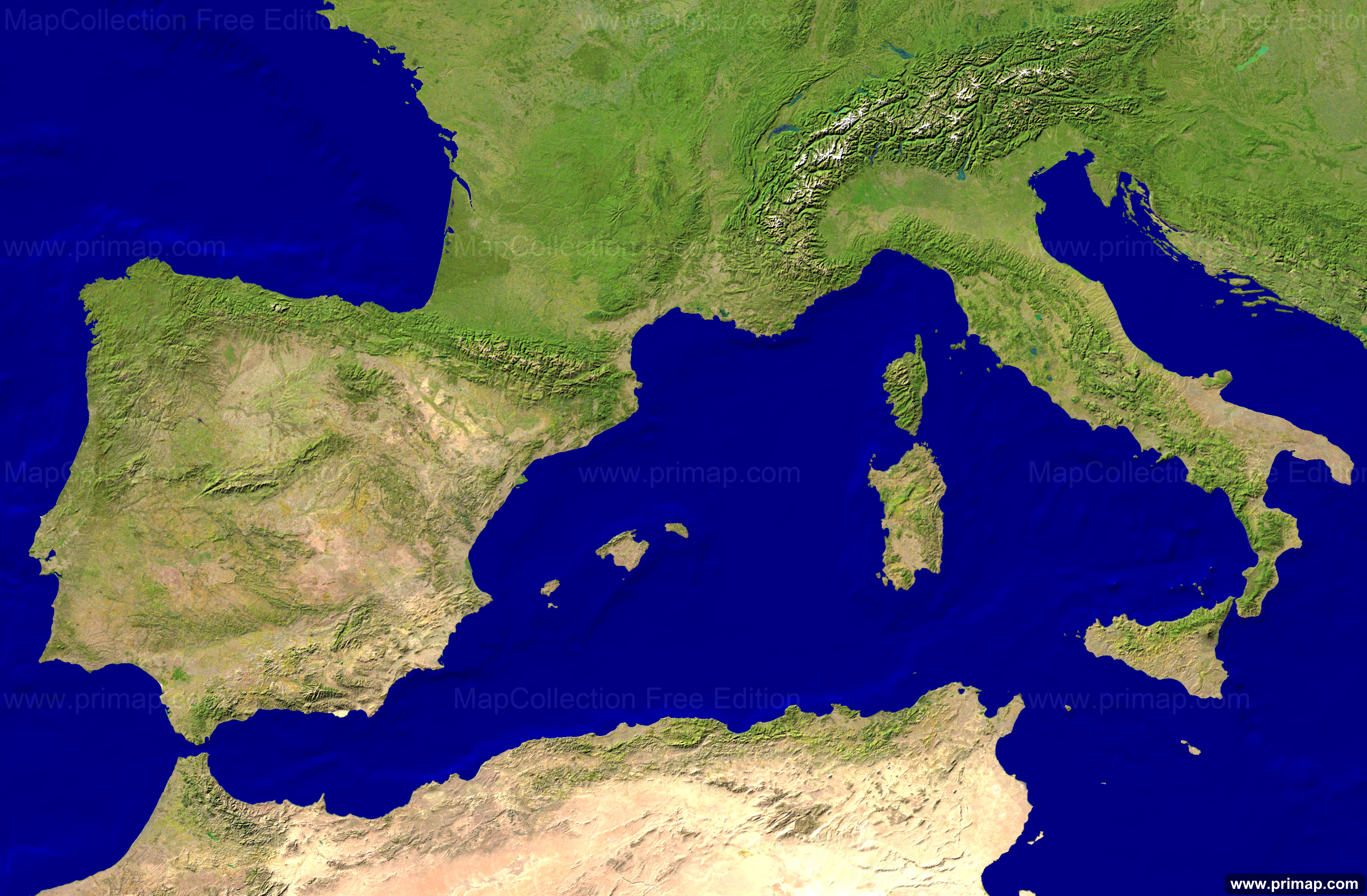 Continental maps - Europe-Southwest - Satellite - 4000x2622
