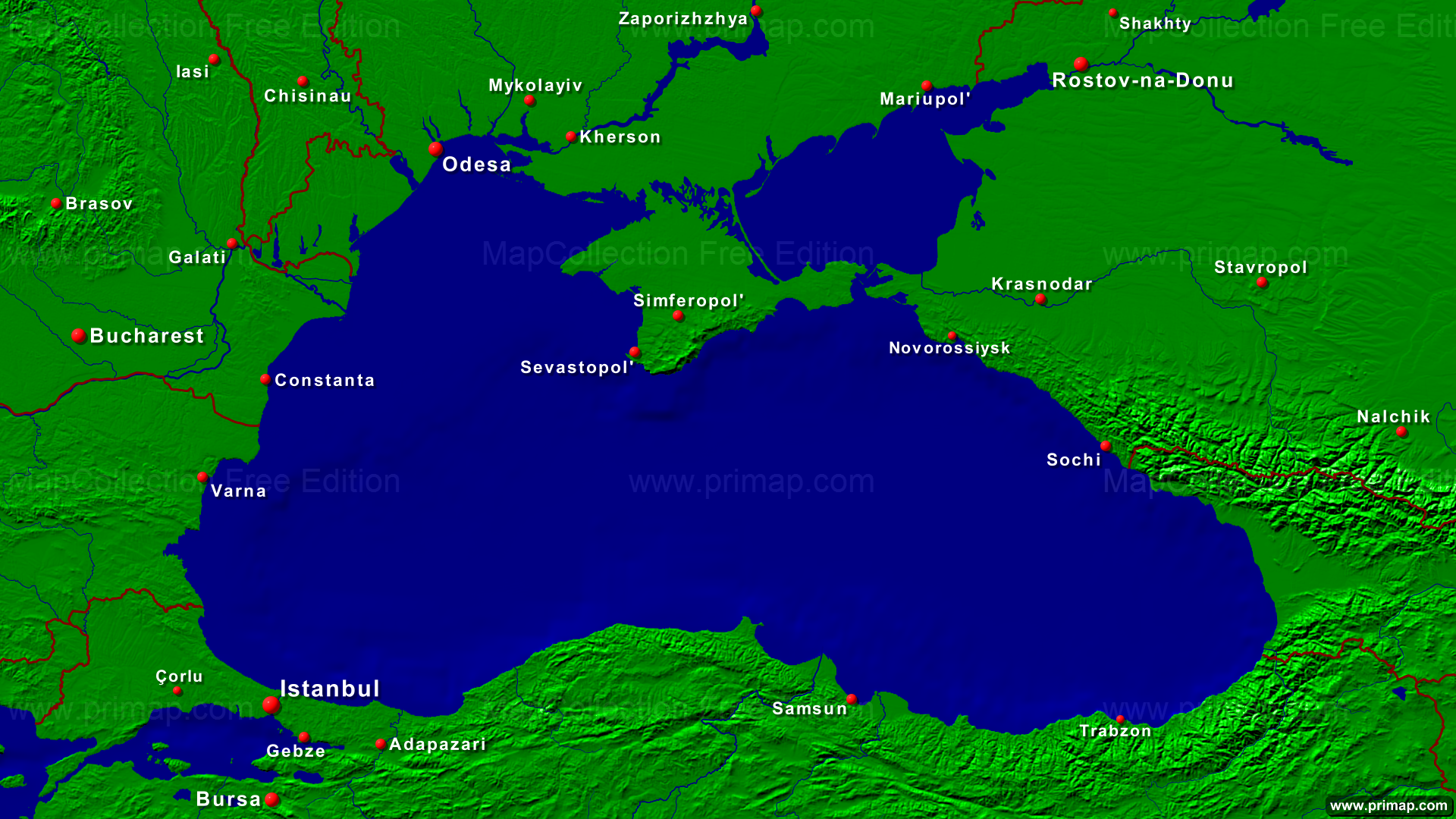 Marine charts - Black Sea - Towns + Borders - 1920x1080 (16:9) large Font