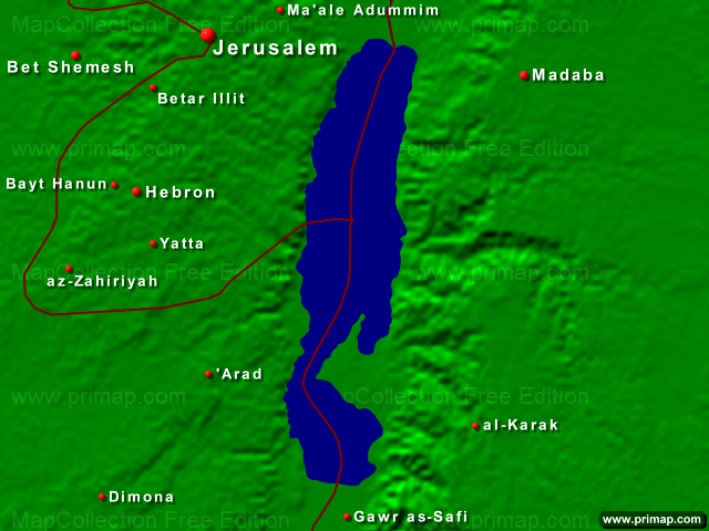 Marine charts - Dead Sea - Towns + Borders - 640x480 (4:3) large Font
