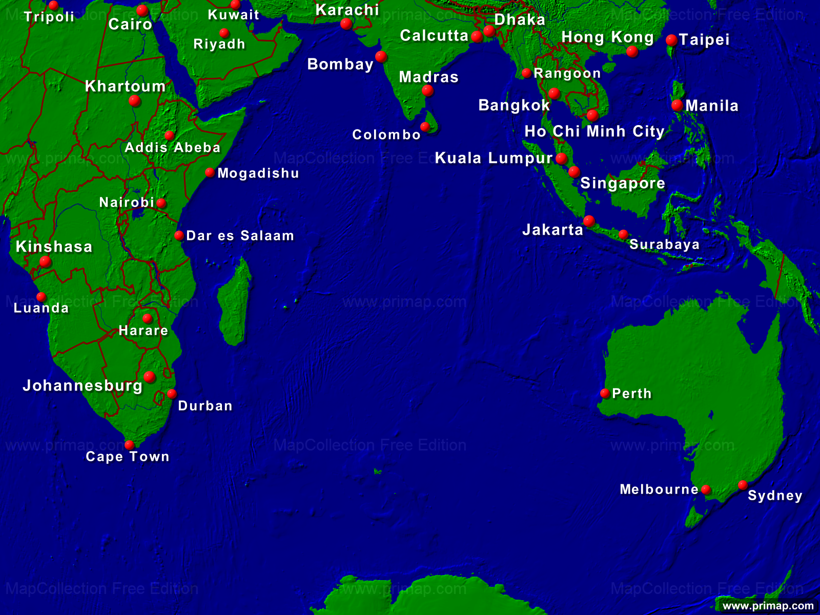 Marine charts - Indian Ocean - Towns + Borders - 1600x1200 (4:3) large Font