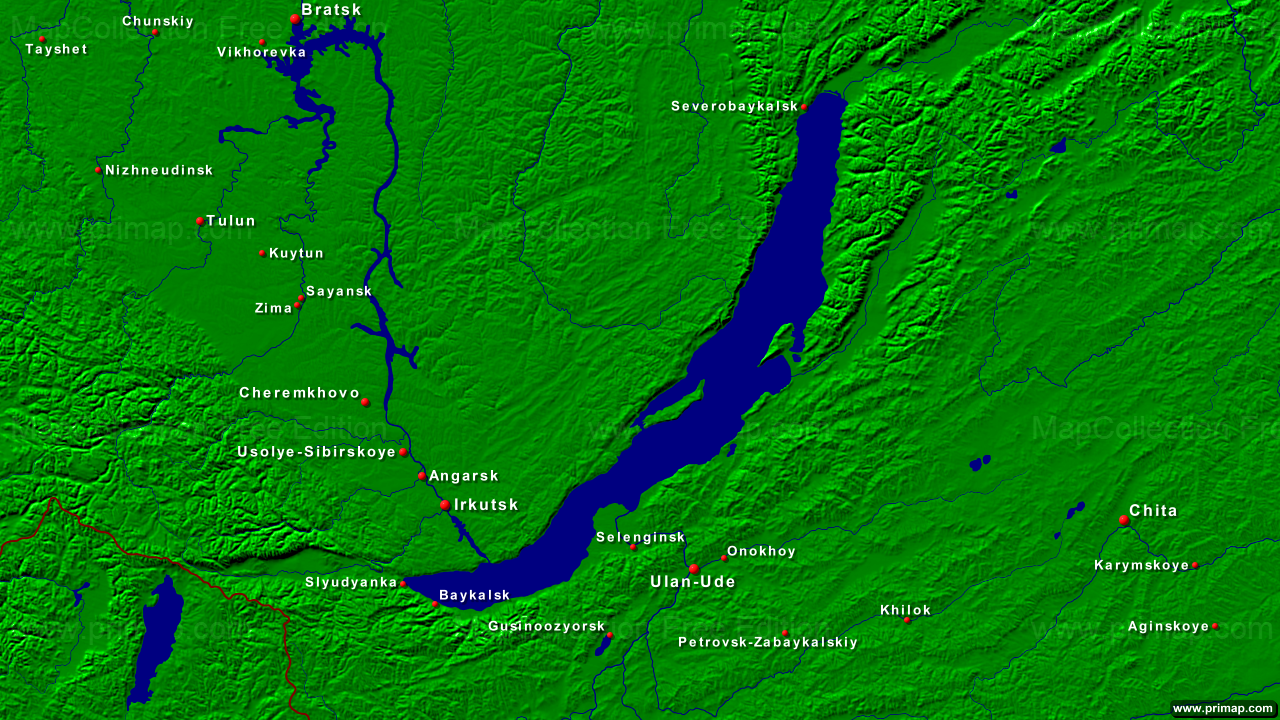 Marine charts - Lake Baikal - Towns + Borders - 1280x720 (16:9) large Font