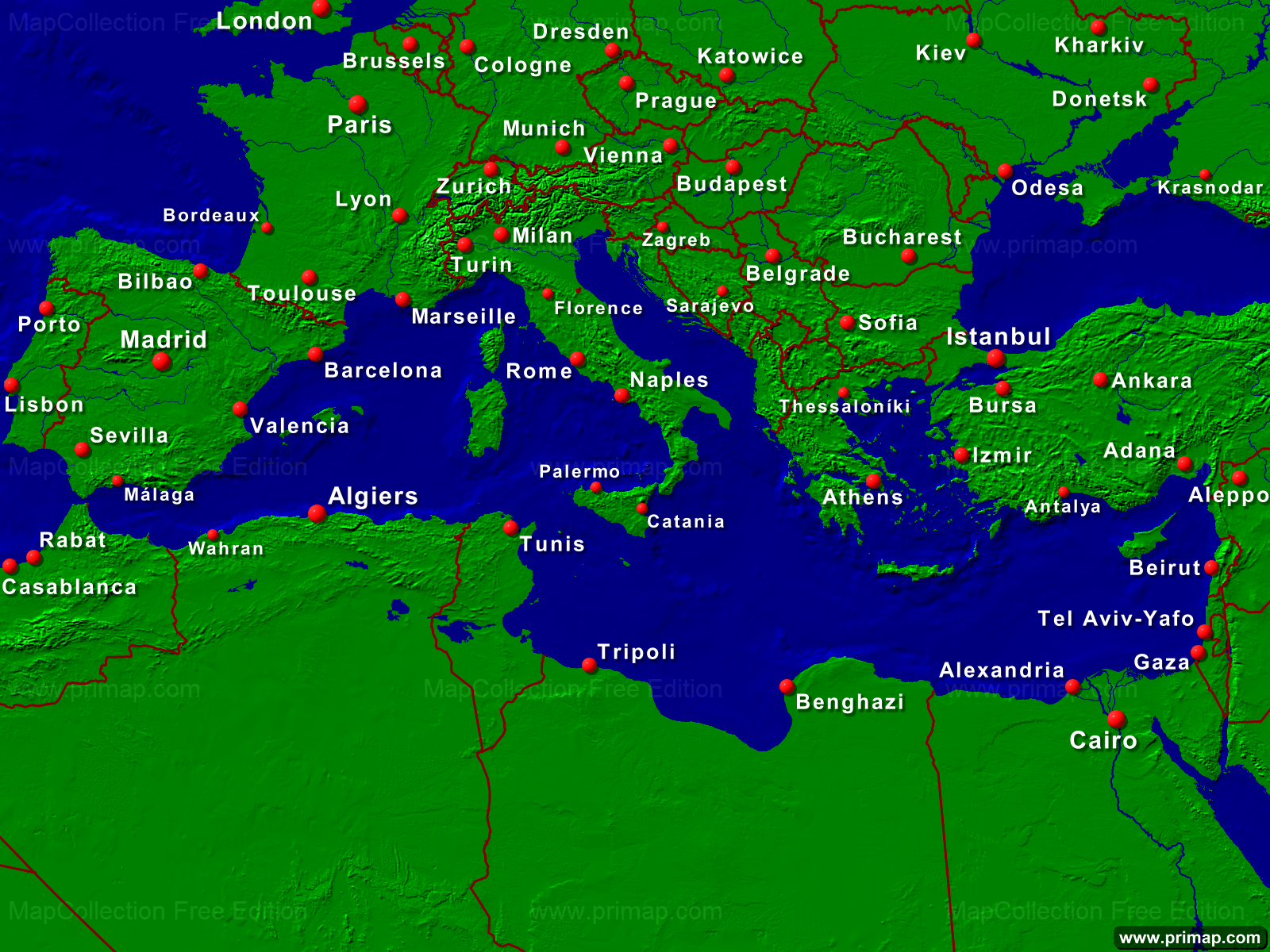Marine charts - Mediteranian - Towns + Borders - 1600x1200 (4:3) large Font