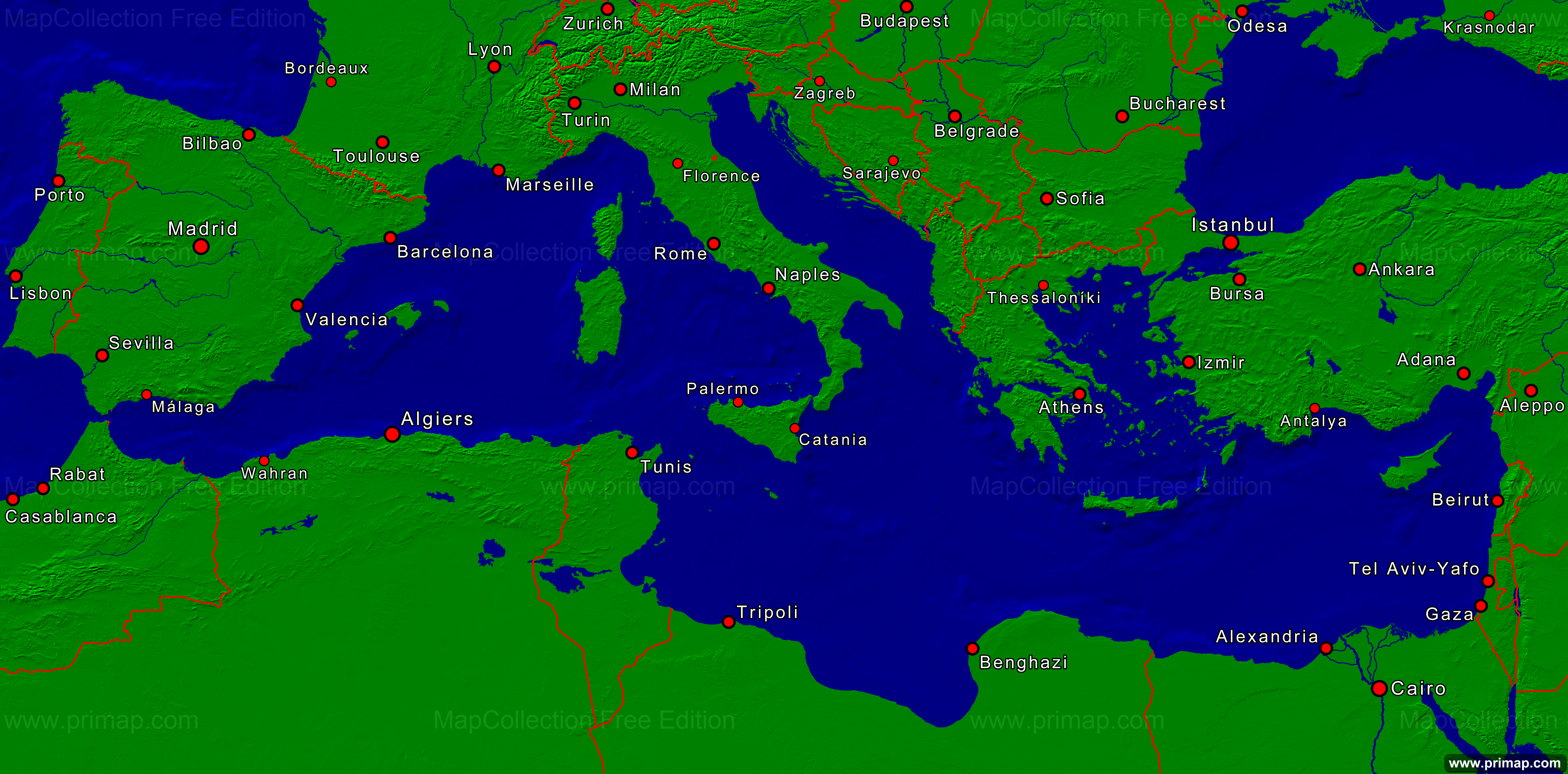 Marine charts - Mediteranian - Towns + Borders - 4000x1975 small Font