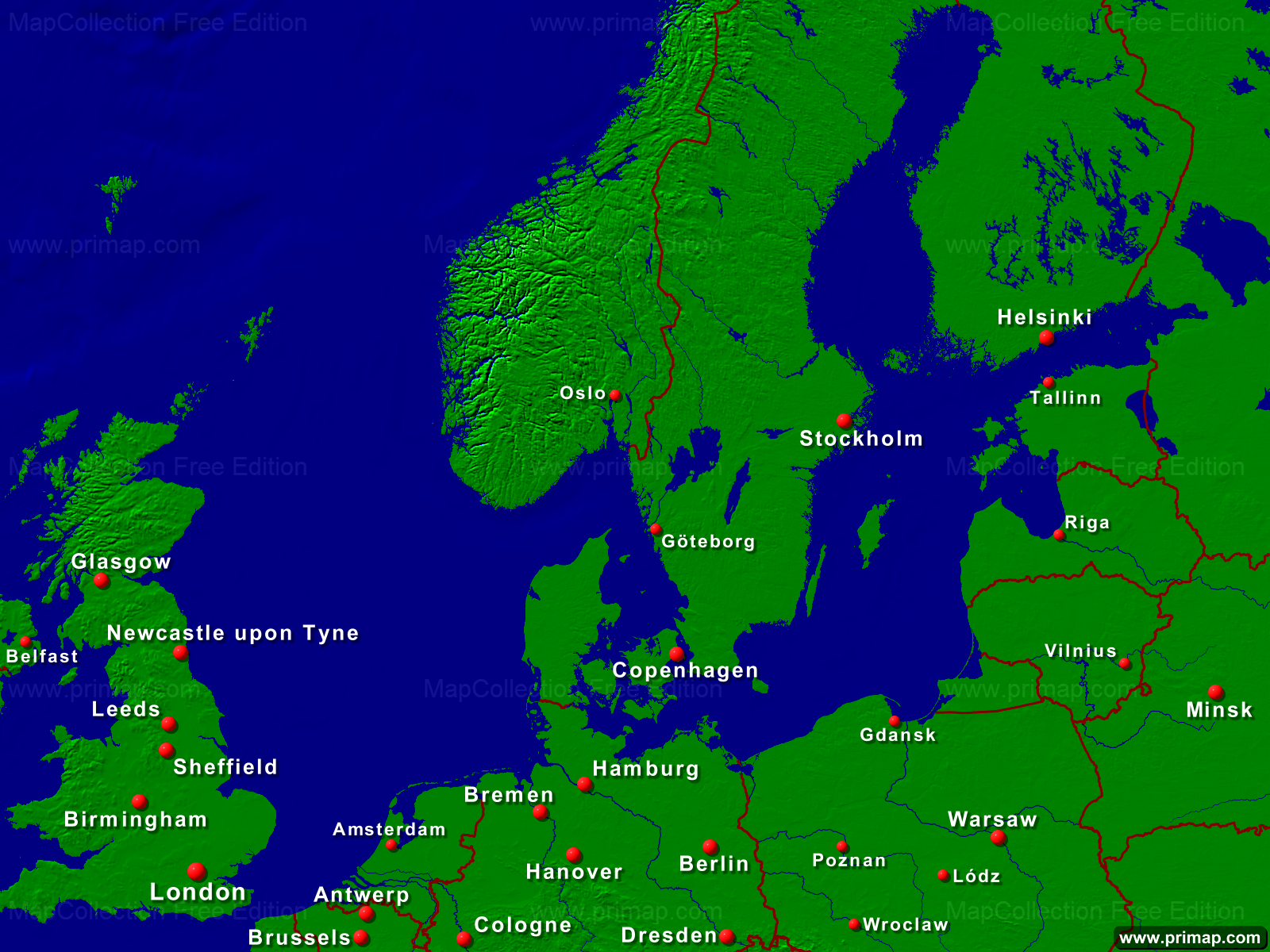 Marine charts - North Sea - Baltic Sea - Towns + Borders - 1600x1200 (4:3) large Font