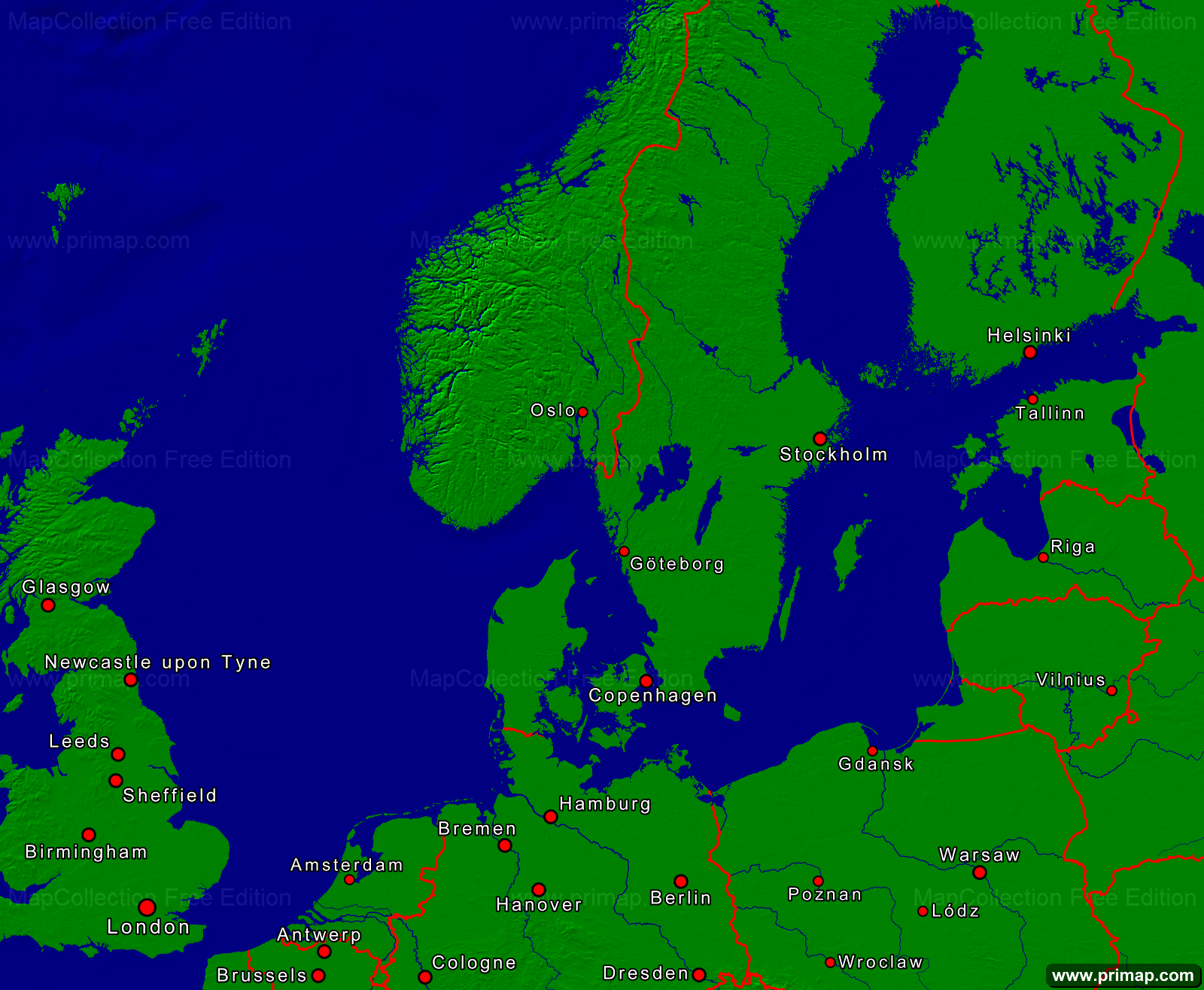 Marine charts - North Sea - Baltic Sea - Towns + Borders - 1600x1315 small Font