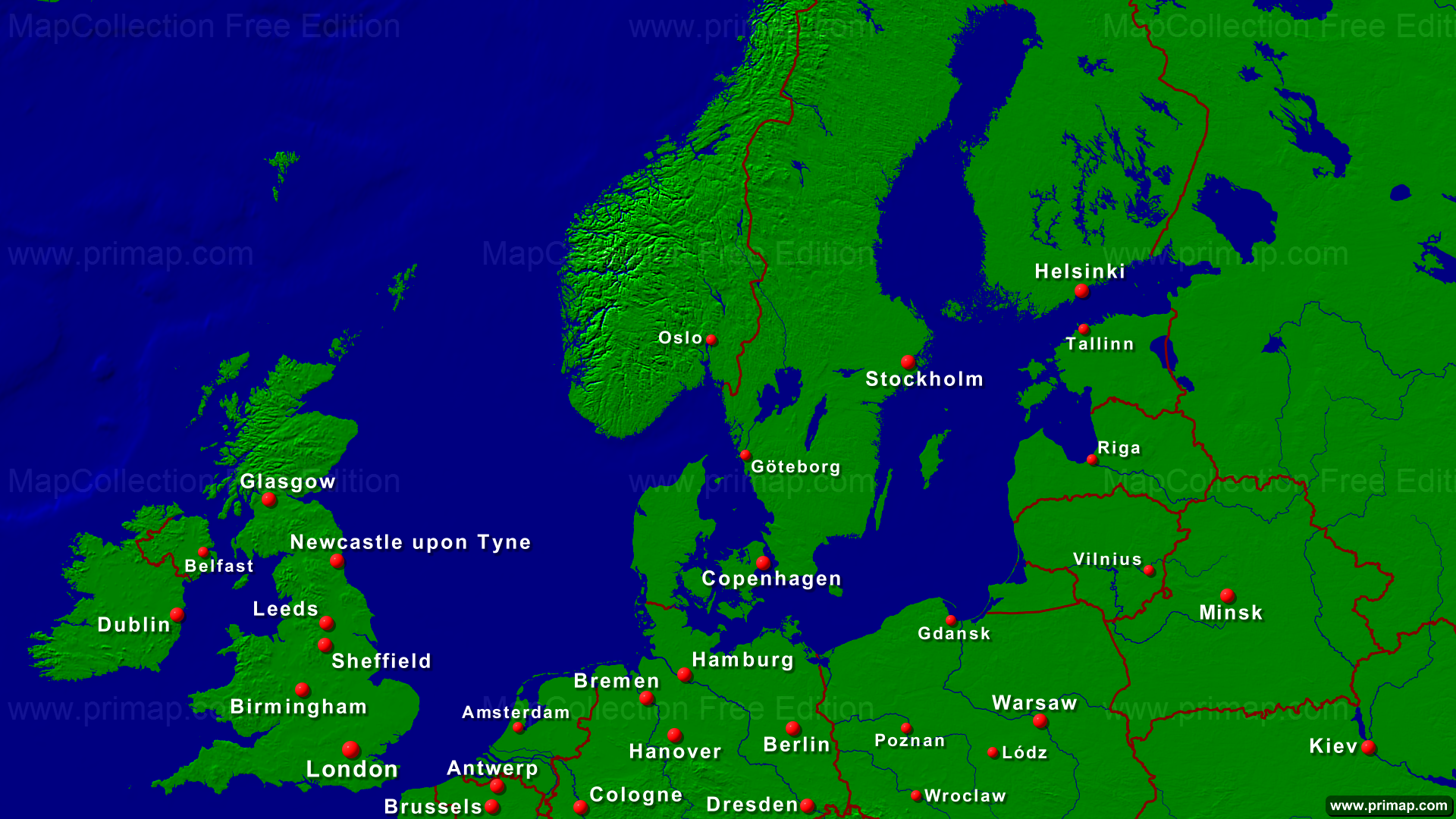 Marine charts - North Sea - Baltic Sea - Towns + Borders - 1920x1080 (16:9) large Font