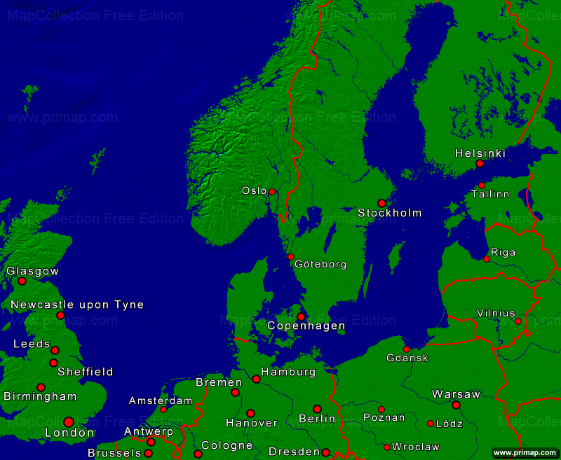 Marine charts - North Sea - Baltic Sea - Towns + Borders - 800x657 small Font