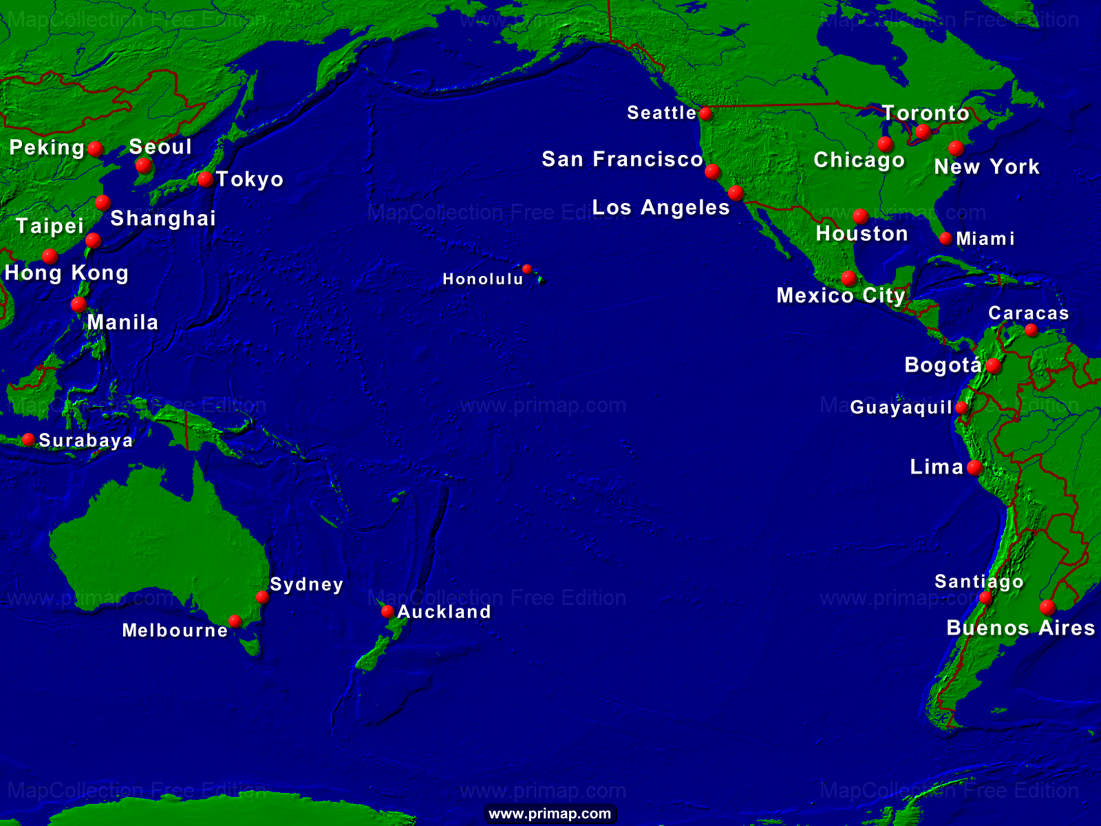 Marine charts - Pacific Ocean - Towns + Borders - 1600x1200 (4:3) large Font