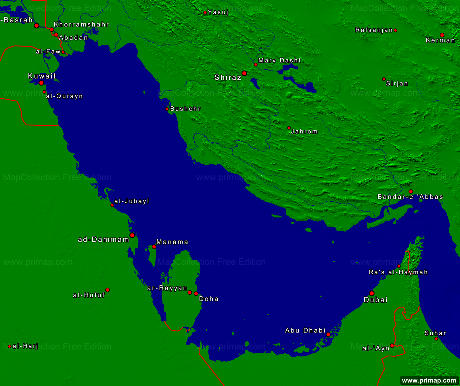 Marine charts - Persian Gulf - Towns + Borders - 1600x1342 small Font