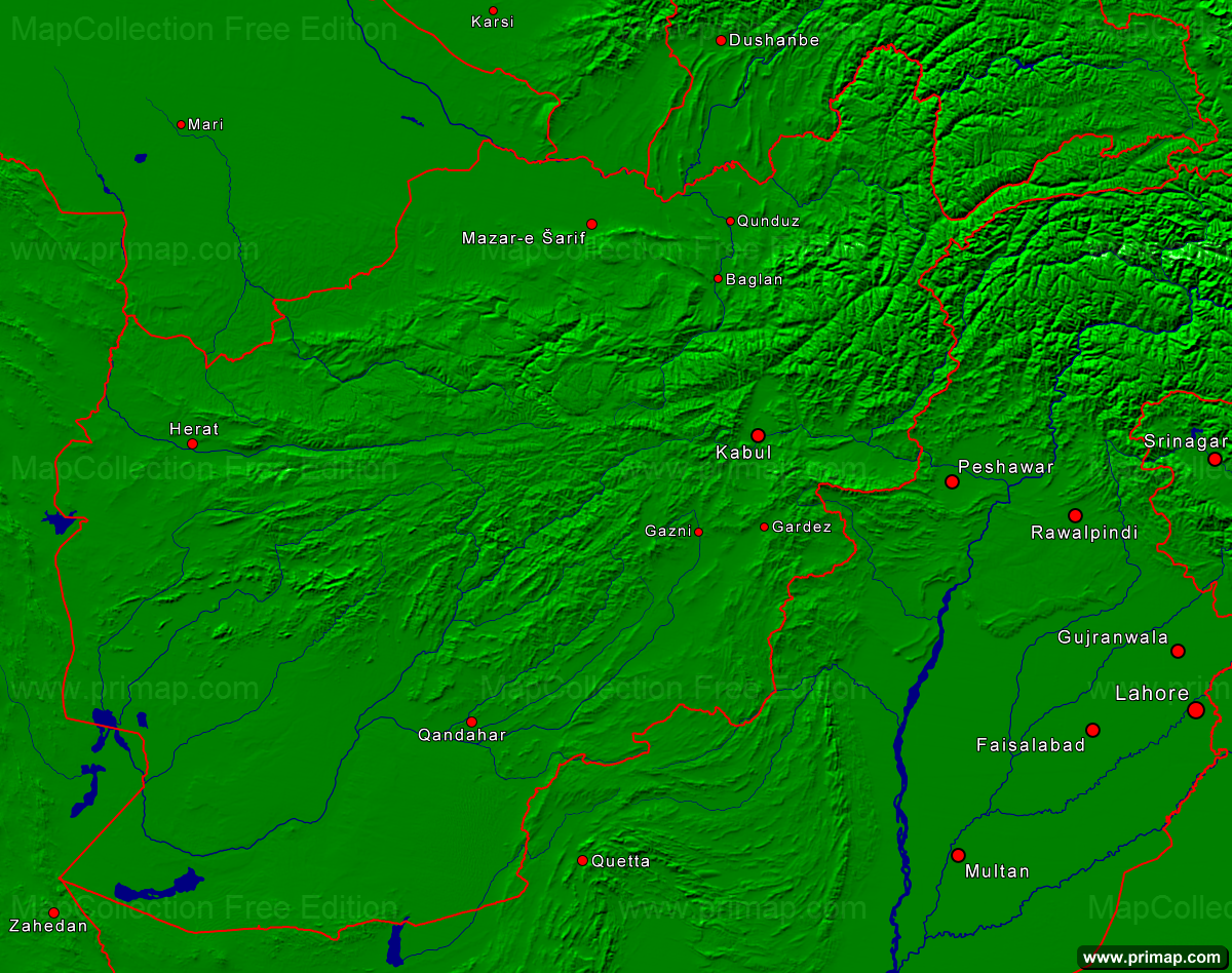 National maps - Afghanistan - Towns + Borders - 1200x948 small Font