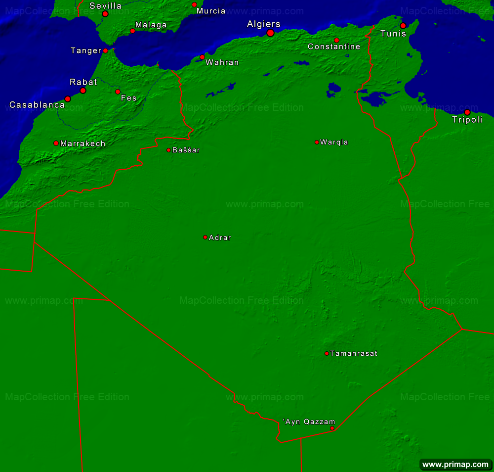 National maps - Algeria - Towns + Borders - 1000x954 small Font