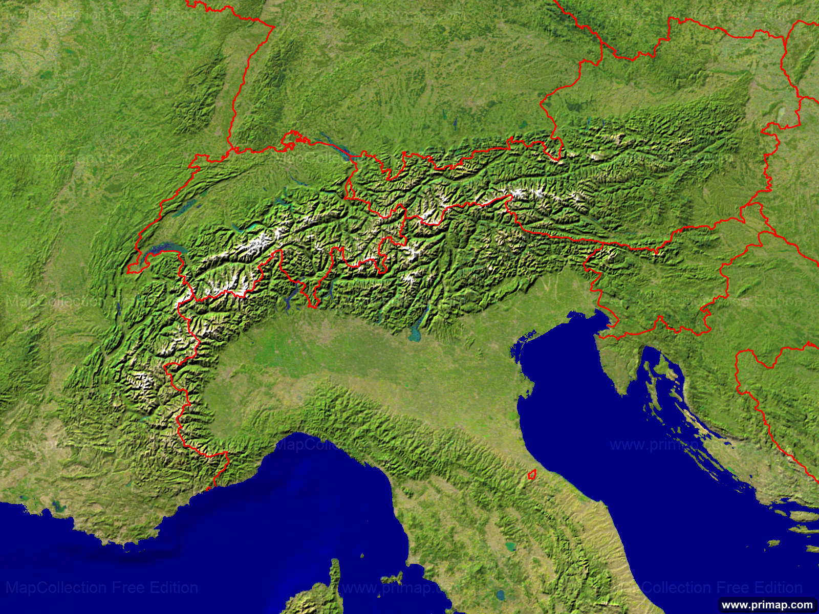 National maps - Alps - Satellite - 1600x1200 (4:3)