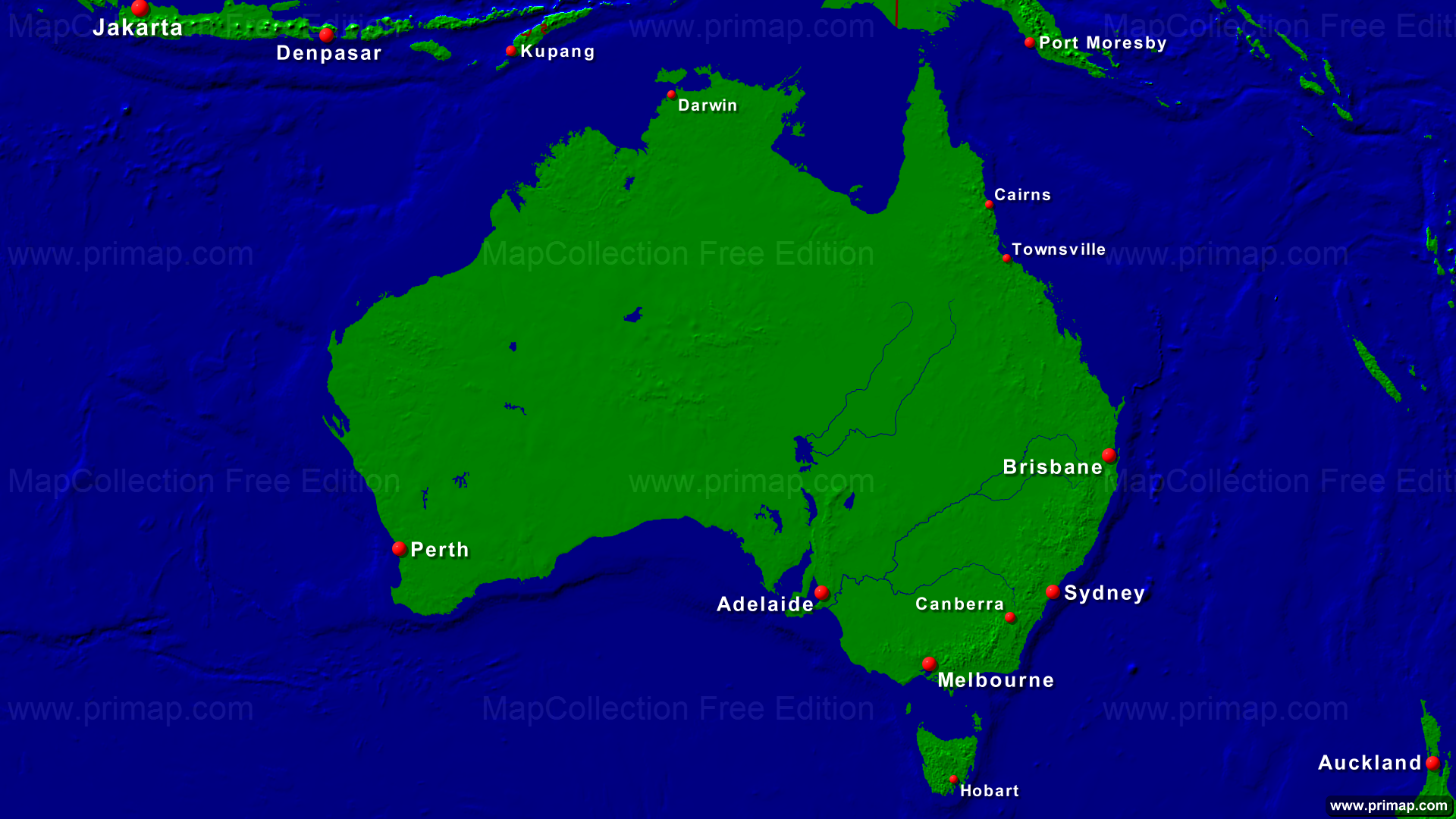 National maps - Australia - Towns + Borders - 1920x1080 (16:9) large Font