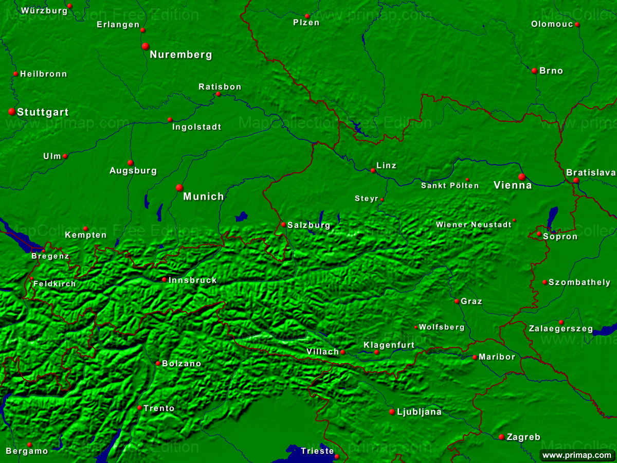 National maps - Austria - Towns + Borders - 1200x900 (4:3) large Font