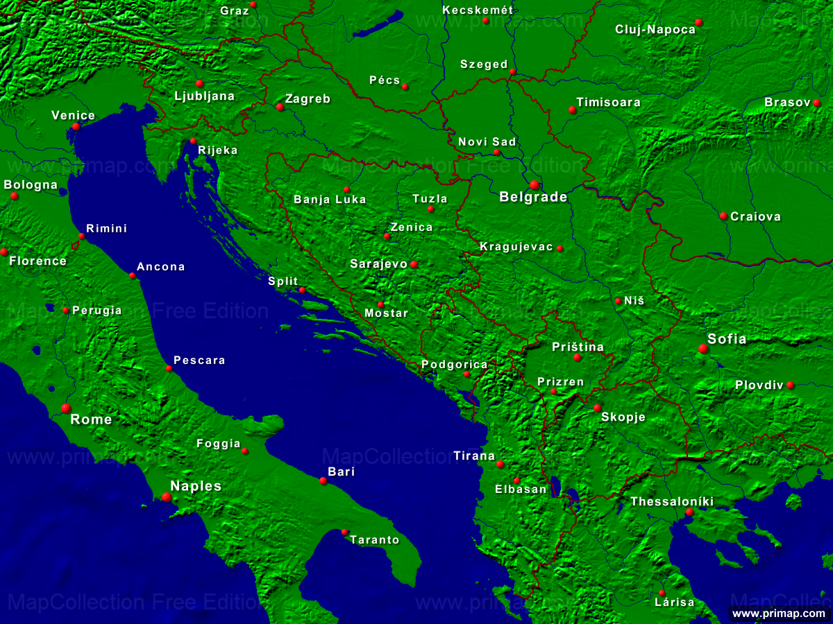 National maps - Balkan - Towns + Borders - 1200x900 (4:3) large Font