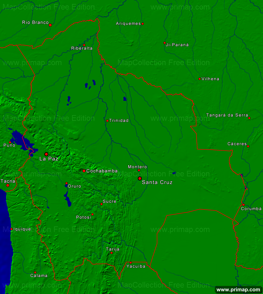 National maps - Bolivia - Towns + Borders - 1075x1200 small Font