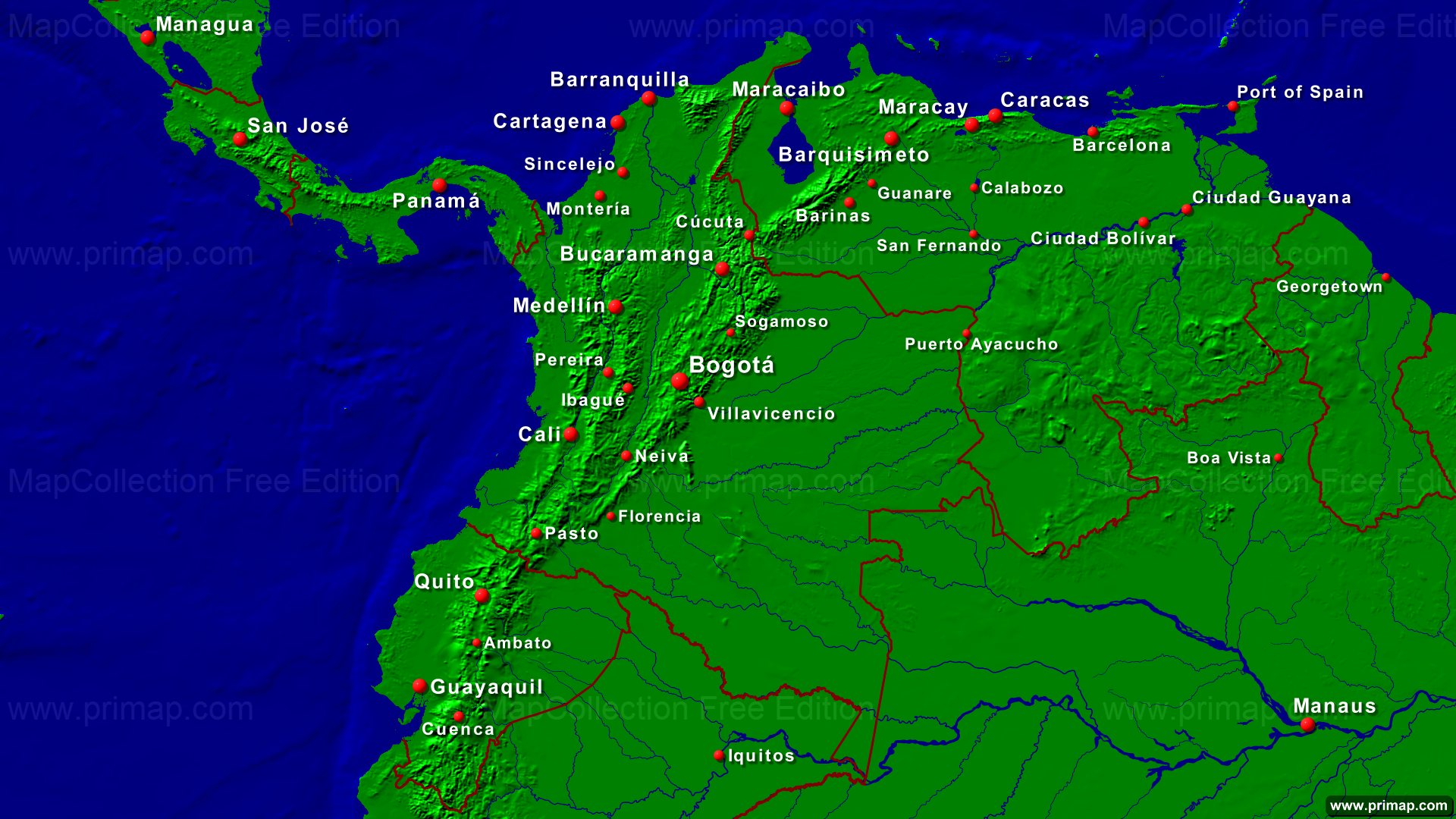 National maps - Columbia - Towns + Borders - 1920x1080 (16:9) large Font
